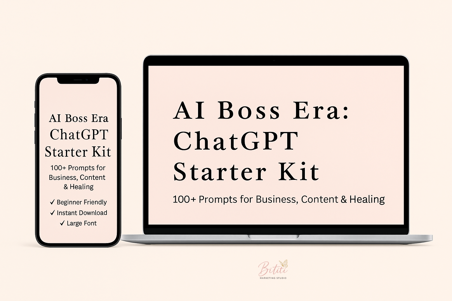 The AI Boss Era: ChatGPT Starter Kit is a luxury, beginner-friendly digital guide created to help you confidently use ChatGPT as your virtual assistant, strategist, content creator, and reflection tool.